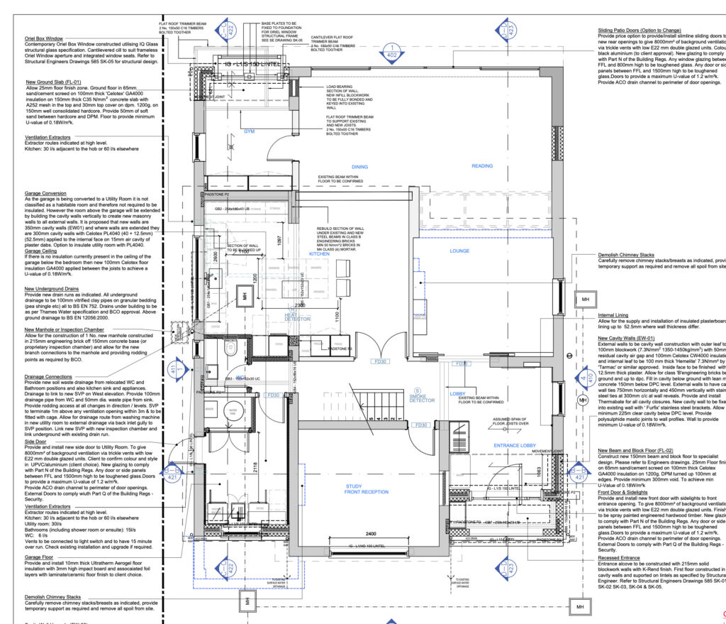 Our building regulations package ensures your project complies with current building regulations, whether it’s a renovation, extension, or new build. We collaborate with specialist consultants, including a structural engineer, to produce accurate technical drawings for approval, tender pricing and the construction process.